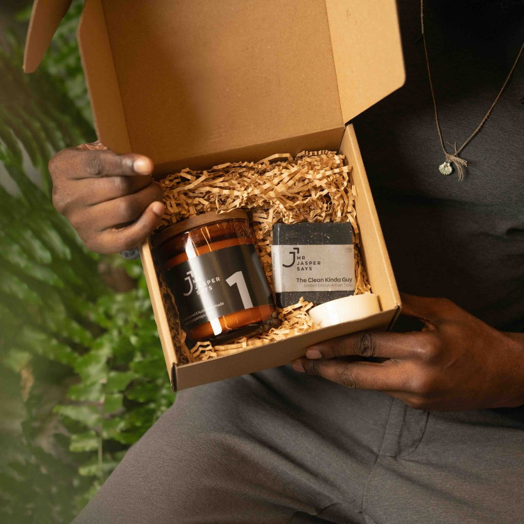Mr Jasper Says A Gift Set For Dad- one large-size candle, soap, and maxi tealight in a gift box.